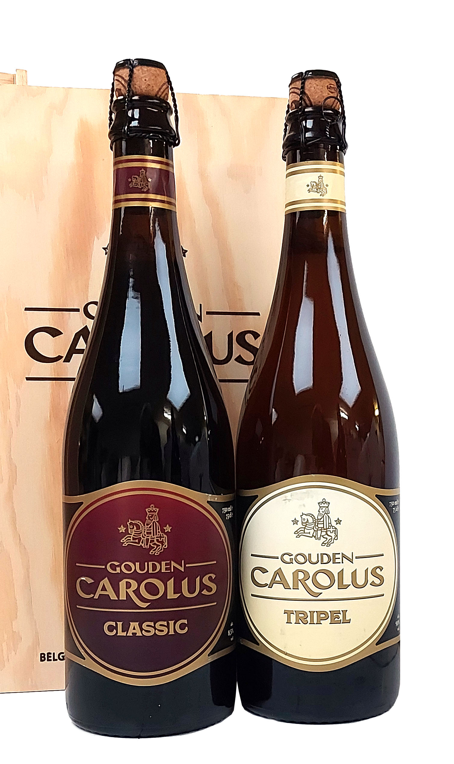 Gouden Carolus Triple: Niettegenstaande de technologische vooruitgang wordt dit bier gebrouwen volgens de eeuwenoude traditie en verenigt het, zoals voorheen, de beste grondstoffen van onze bodem zoals rijpe gerst en fijne hop, om zo veel mogelijk puur aroma te behouden. Dit bier werd oorspronkelijk gebrouwen voor de Ridders van het Gulden Vlies in 1491.