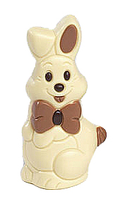 Chocolade paashaasje, 14 cm hoog en +/- 100 gram zwaar gemaakt van Belgische witte Callebaut chocolade.